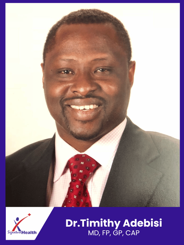 Dr. Timothy Adebisi is an experienced family physician with over 25 years of clinical experience. He completed advanced training in the United Kingdom, gaining expertise in family medicine, surgery, and orthopedics before working as a GP in several regions.